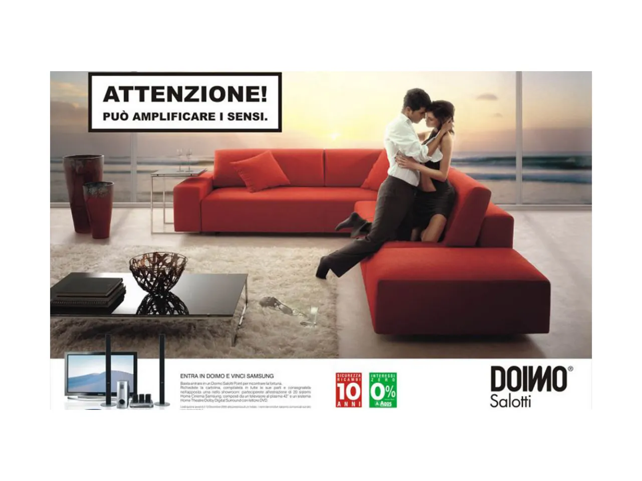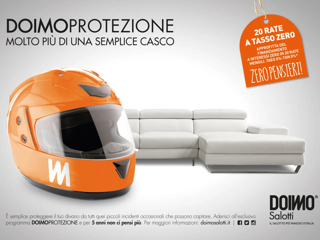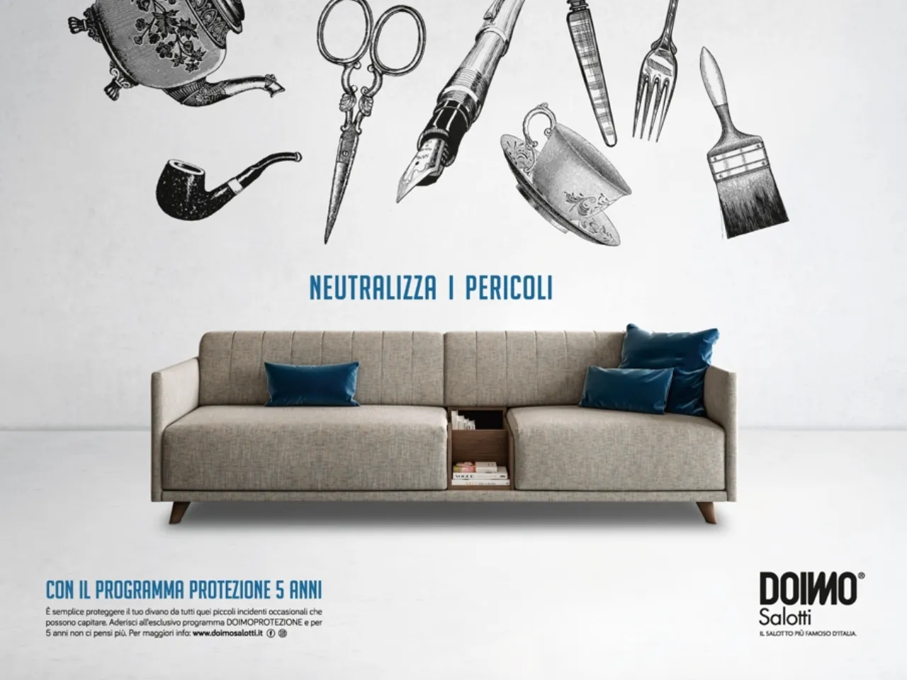 Advertising campaign dedicated to the tools offered by Doimo Salotti for a warranty service after the purchase, thanks to the possibility of the loan at rate 0 and on availability of the coverings even after 10 years from the release of the model.