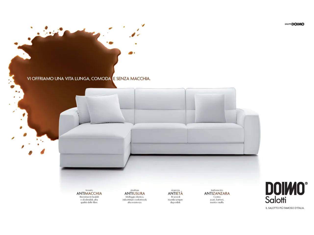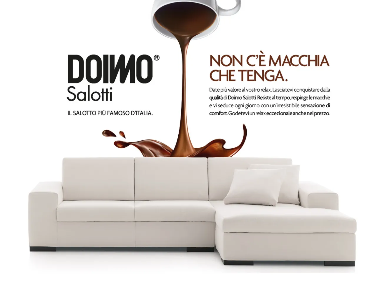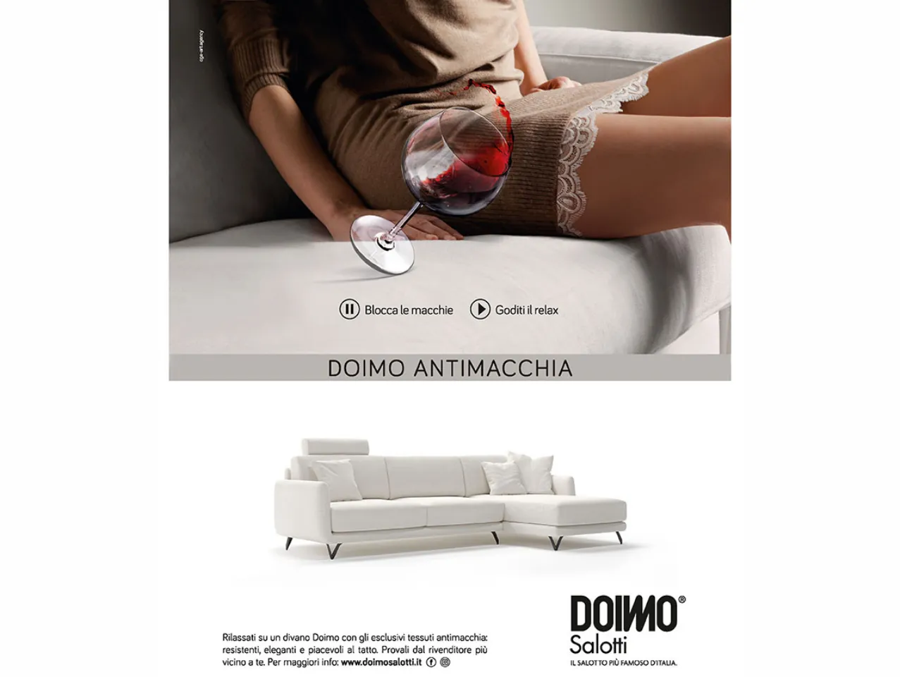Communication dedicated to the added values that Doimo Salottti coatings can offer, such as: stain-resistance, anti-wear, anti-age and anti mosquito. The Polo model sofa is the main protagonist.