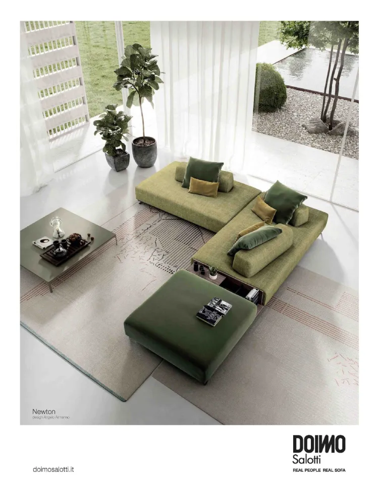 Doimo Salotti's 2024 advertising campaign features a dedicated institutional communication campaign featuring the exclusive Newton model, representing a new generation of sofas whose key feature is the flexibility of composition that reflects usage habits, project needs, and the space to be furnished.