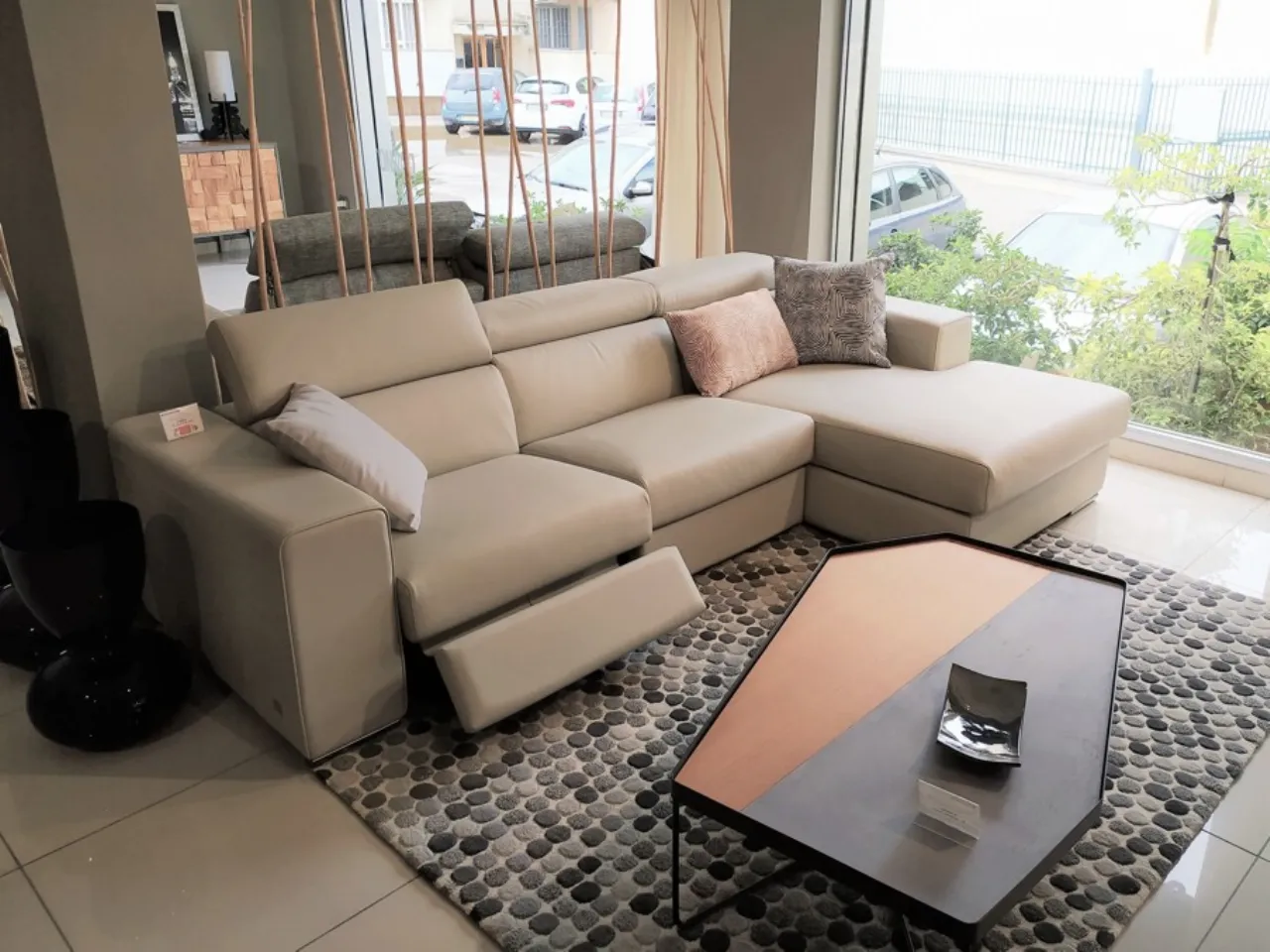 Modern modular sofa with extendable seats.