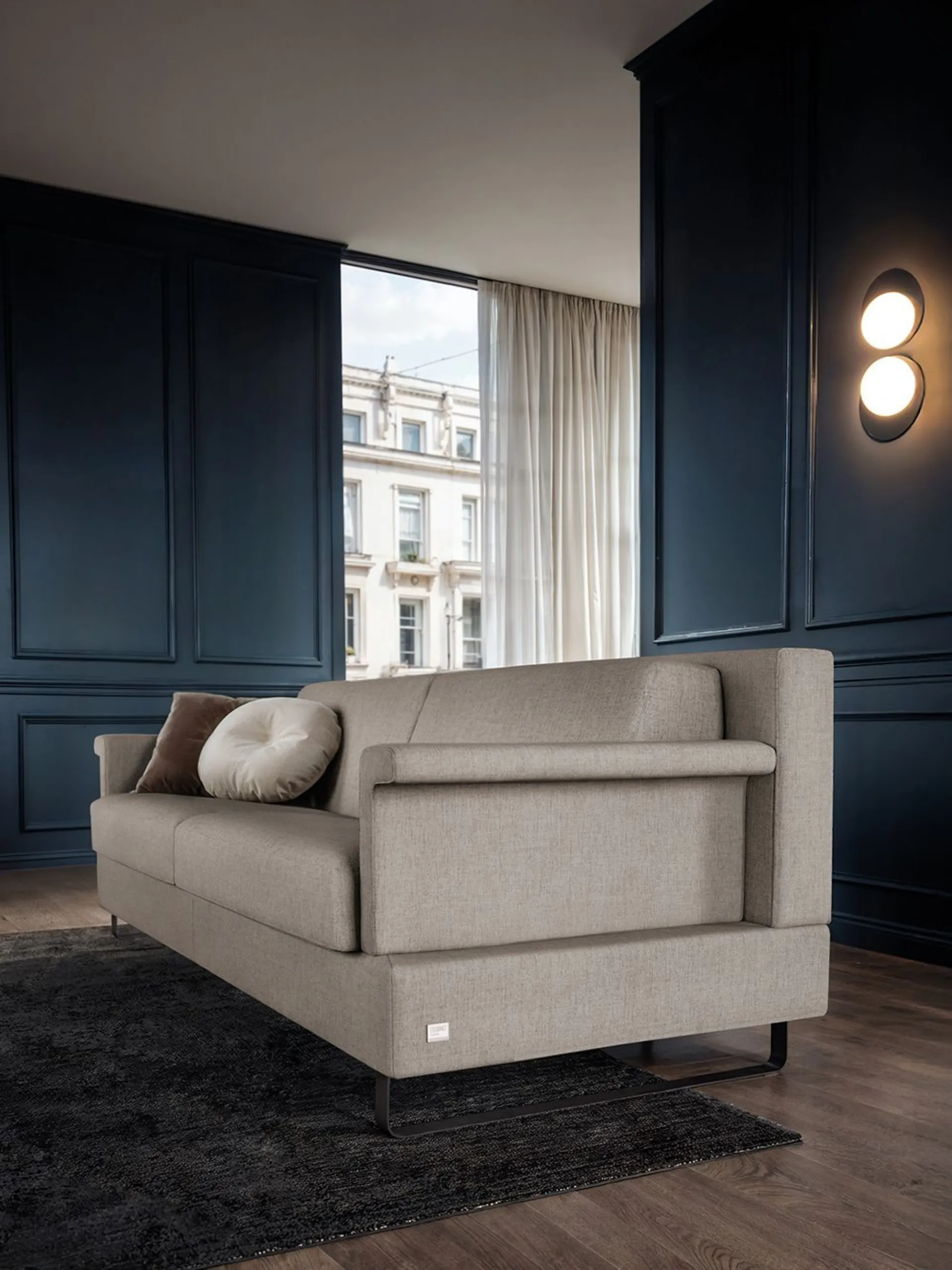 Tais represents the perfect balance between contemporary style and functional elegance. With its exclusive design, it stands out for its sharp and modern lines, capable of enhancing any environment. The structure raised from the ground, supported by refined metal feet, not only gives lightness to the sofa, but also guarantees practicality and simplicity in daily cleaning. The carefully crafted details, such as harmonious proportions and quality materials, make Tais an ideal choice for those looking for a sofa bed that combines aesthetics and comfort.