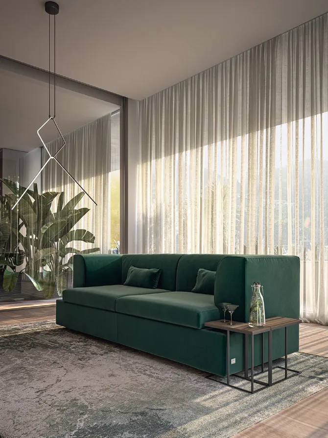 Other convertible lounge solutions, on the other hand, become a comfortable double bed, through a mechanism integrated into the structure, which allows an electrowelded bedspring and mattress to be folded inside the 3-seater sofa. The mechanism is easy to use and opening is quick, without removing the seat and back cushions, which are tied to the structure itself.