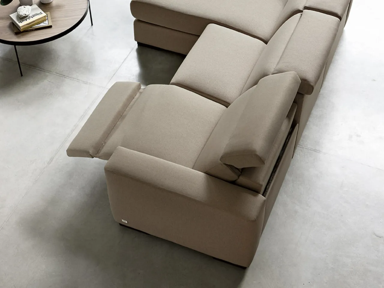 A combination of technology and upholstery, the reclining seats allow the positioning of the backrest and footrest at different inclinations. The electric relax movement can include headrests, backrests and footrests. In some sofas you can also have the manually adjustable headrest, separately from the rest of the seat: an added value to comfort.
