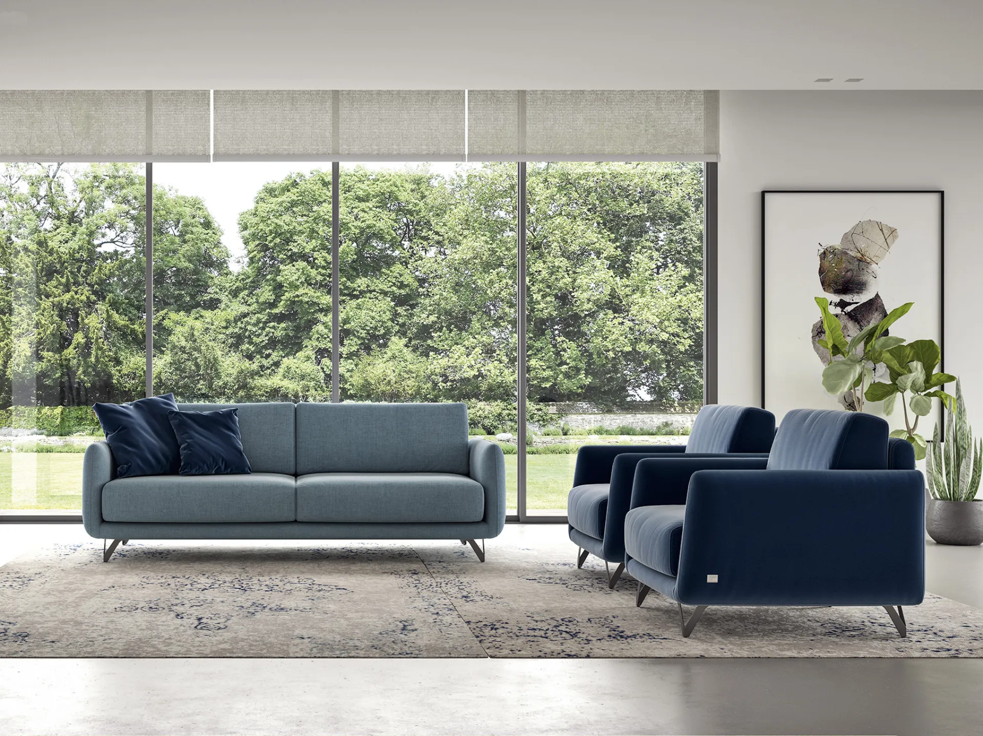 An elegant sofa that encloses simple shapes and functionality. The slender line of the armrest, enhanced by the central stitching and slight inclination, gathers deep seat and back cushions, which thanks to the construction with dual density polyurethane foam, support the body with the the right delicacy. The Bristol model is a sofa with extendable seats upholstered in fabric and leather. In addition to the elegant armchair version and finished linear sofa, various elements are available to create a customized "modular" sofa according to the living room space .