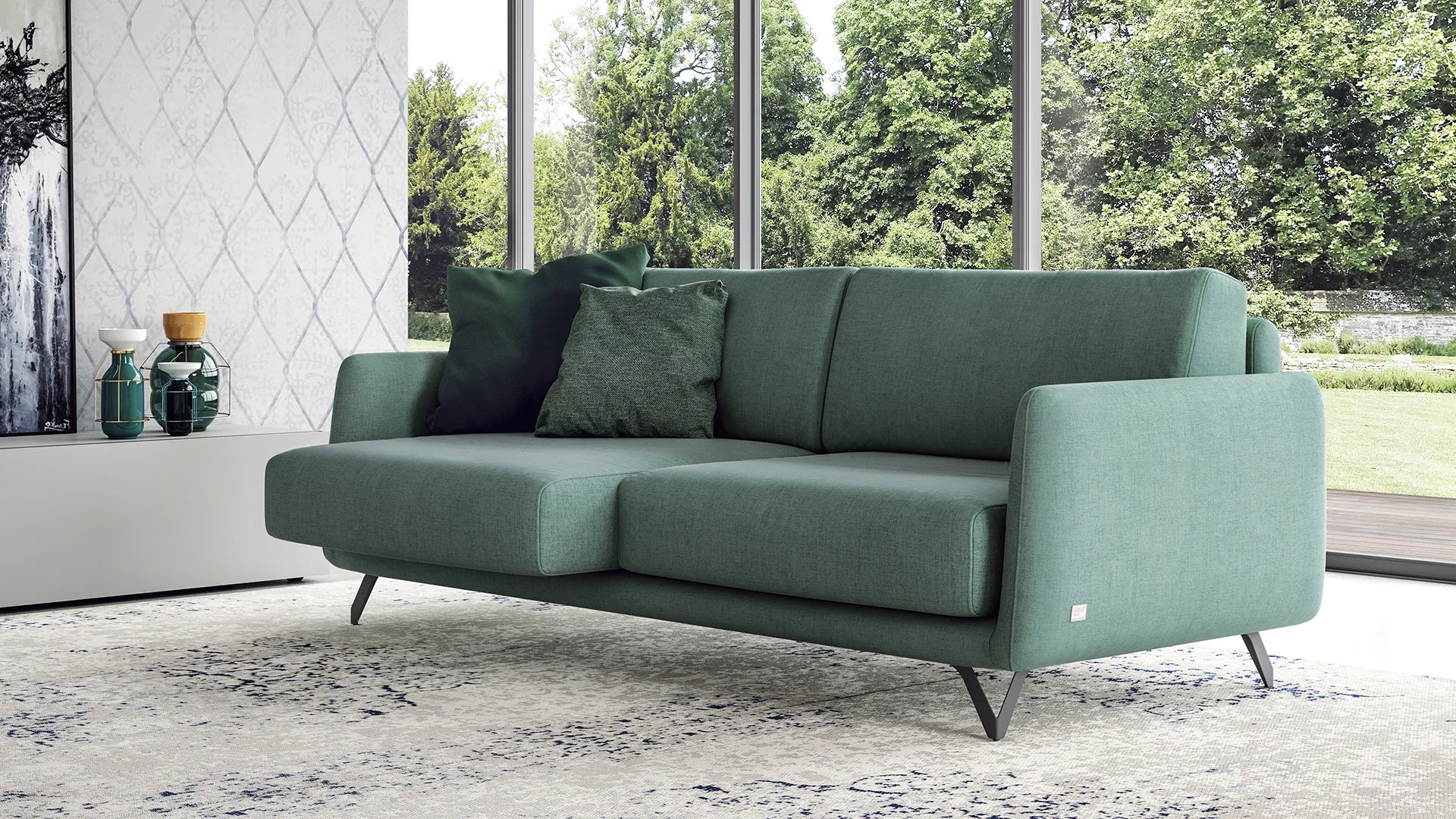 The seats of the Bristol sofa can be requested with the sliding mechanism. This practical solution allows, with a slight pressure of the body towards the outside, to extend the seat depth by as much as 23 centimeters.