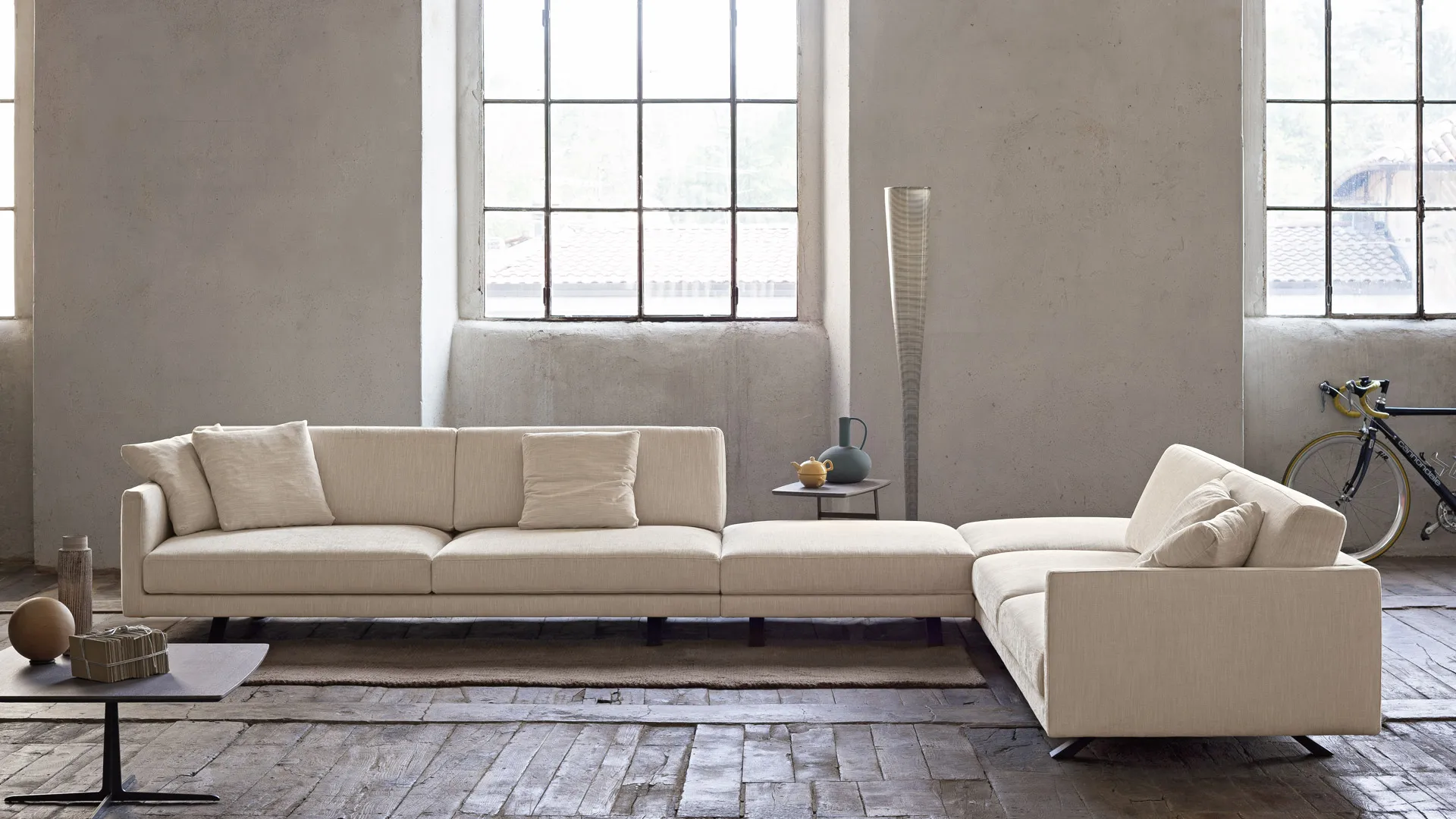 The vast modulabilityà of the Bart model allows you to compose the sofa of your dreams, satisfying the various living needs related to the available dimensions: linear or corner, with peninsula or terminal pouf. The sofa becomes a living room island and a space to enjoy in the company of friends and family.