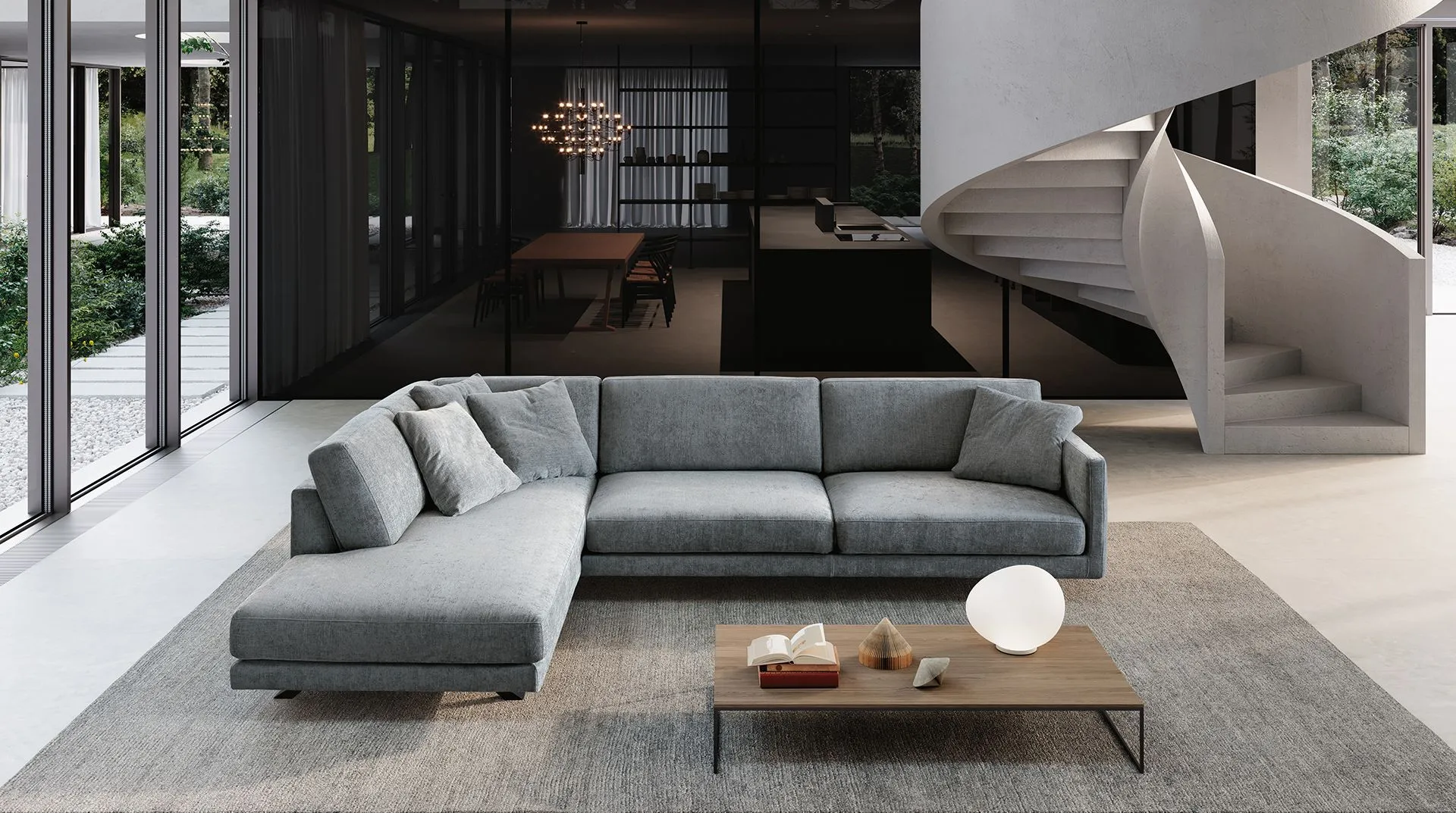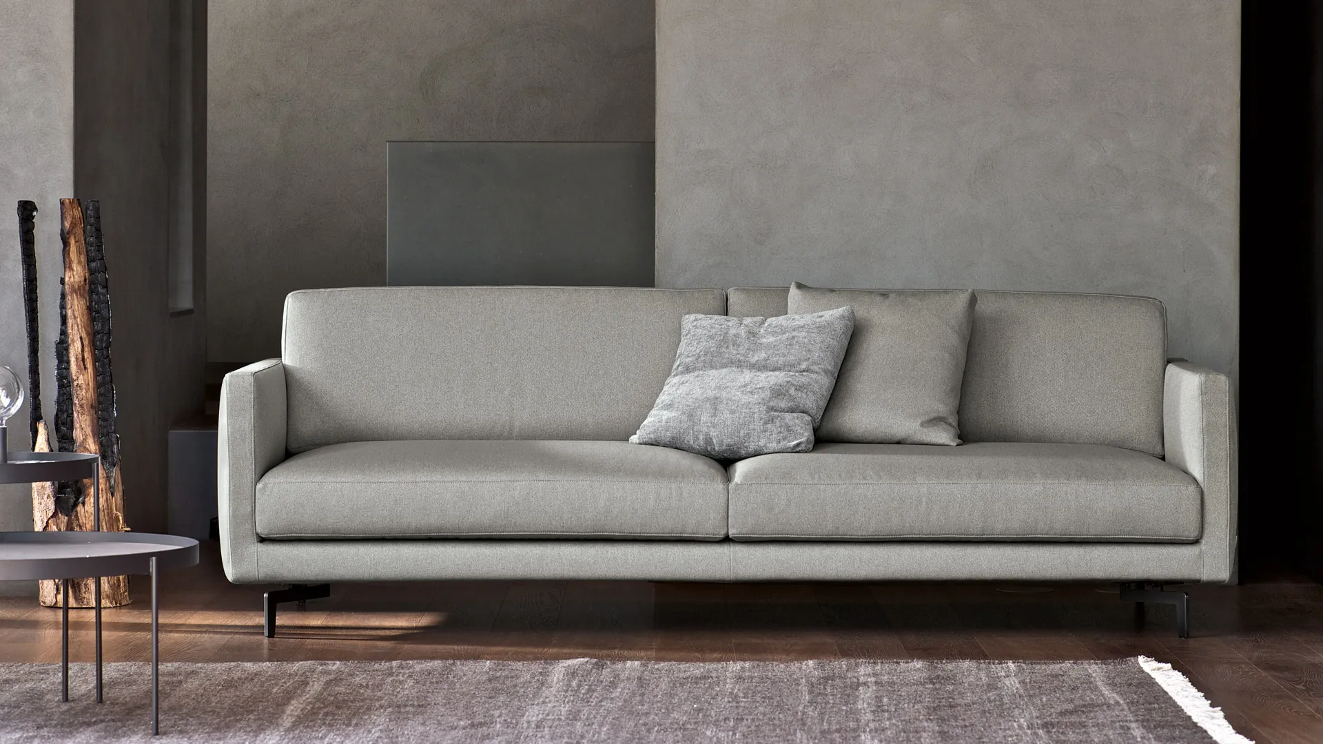 Bart is a modern sofa and represents the perfect balance between the Scandinavian-inspired form and seating ergonomics that charaxcterise contemporary sofas. A refined design, where the essential lines of the profile outline the structure's volumes, lightened of the superfluous and defined by the precise geometry of the armrests.