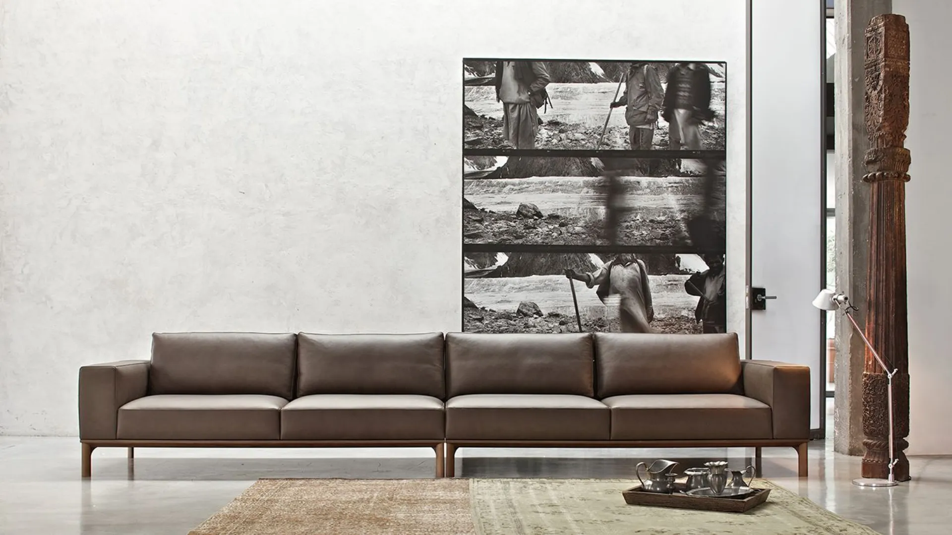 Leonard combines the comfort of the wooden sofa with the aesthetic elegance of the wooden base and an exclusive design, characterised by the clear-cut linearity of the shapes and the raised base from the floor. More than a sofa, a piece of furniture of great craftsmanship, in which different materials meet and combine in the search for original and exclusive solutions.