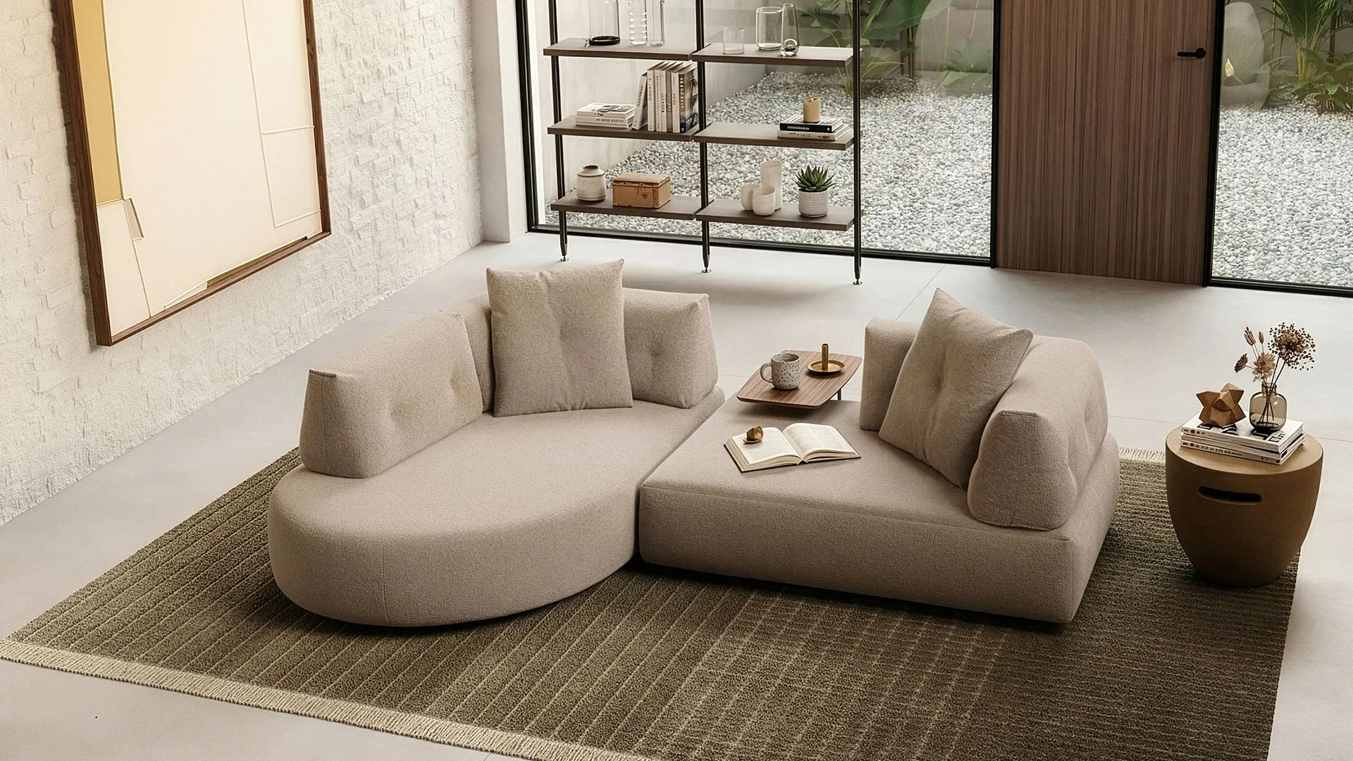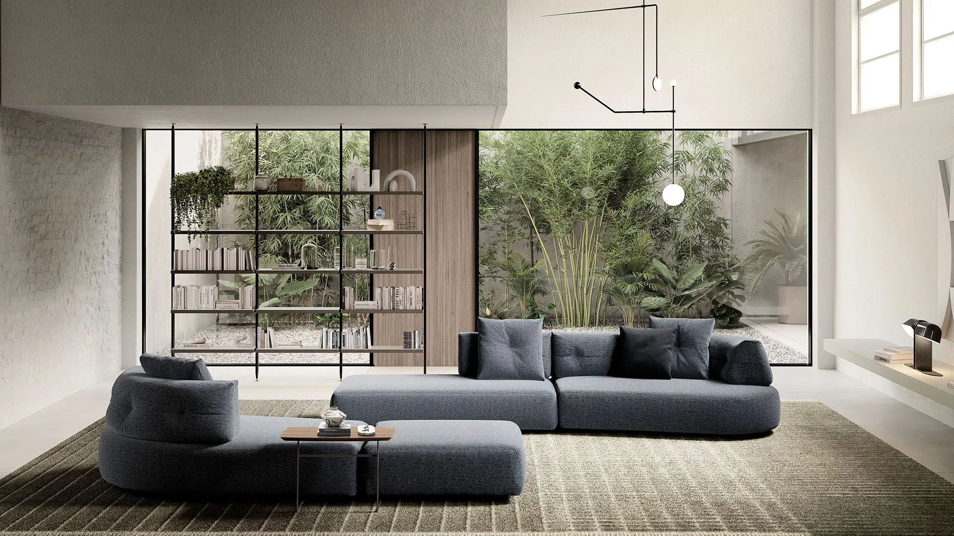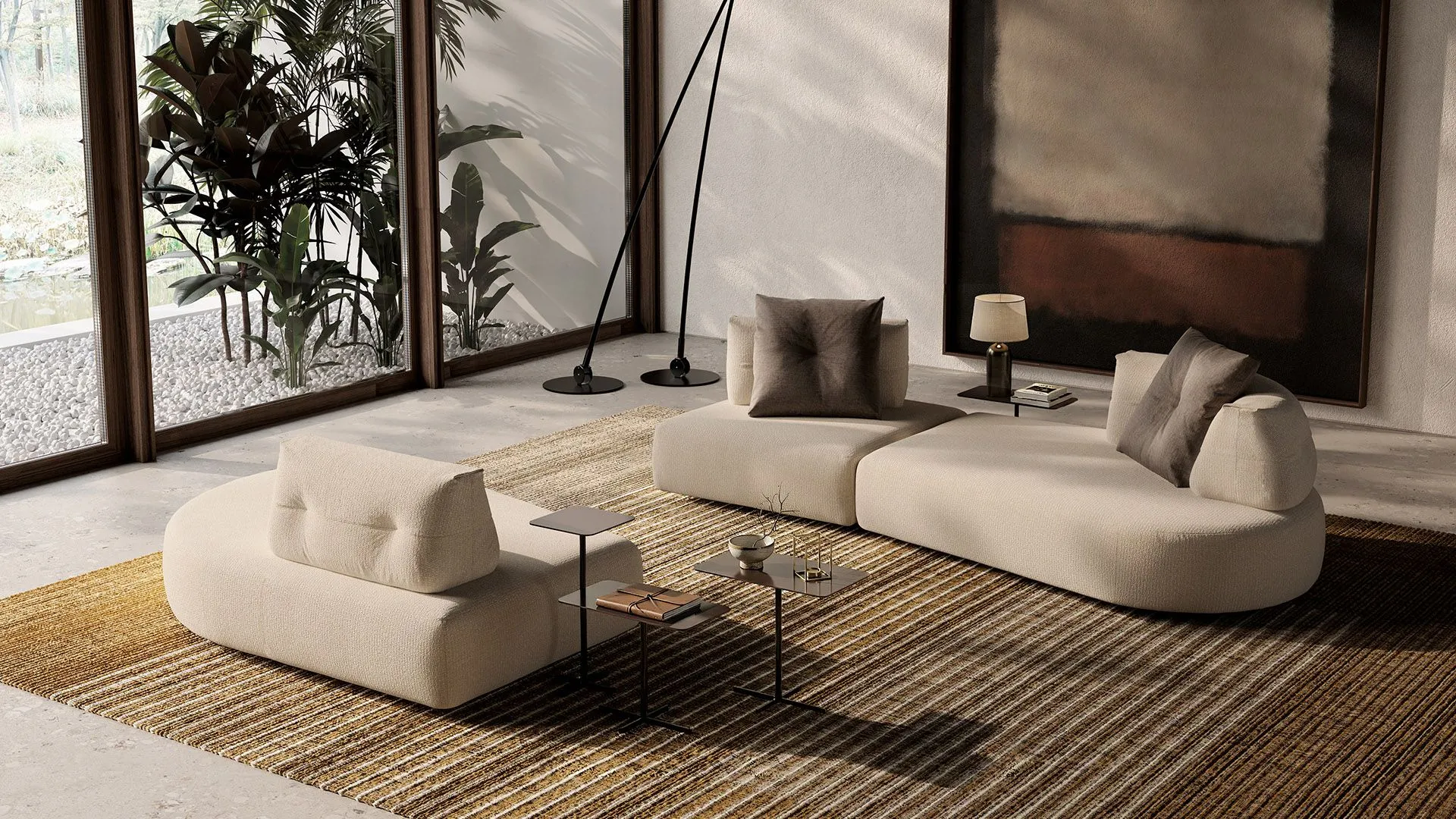 And continuous lines draw a sculptural yet welcoming sofa, where the generosity of the seats meets a rigorously controlled design.