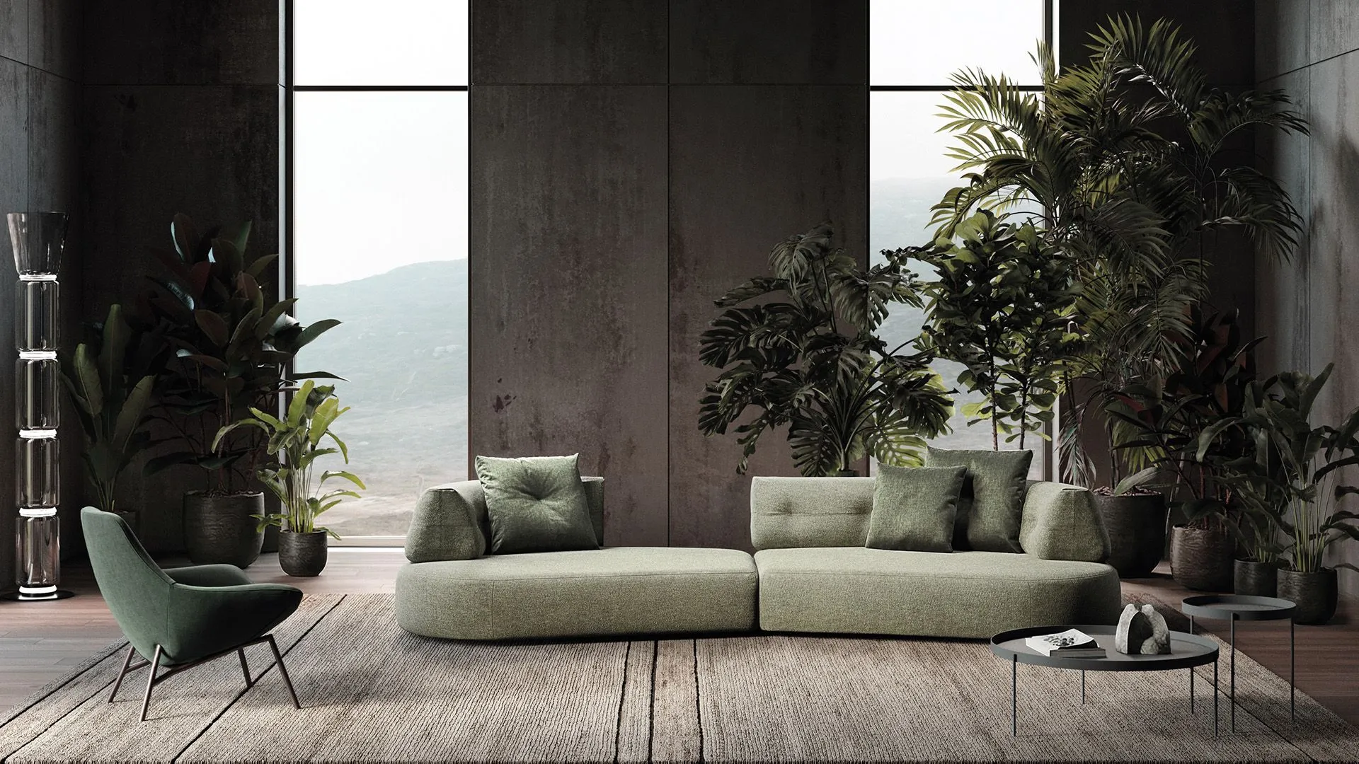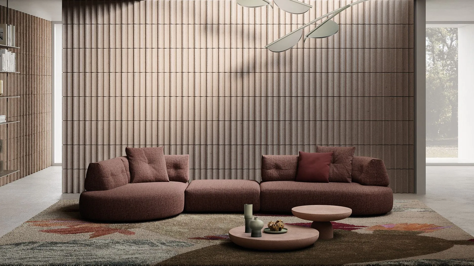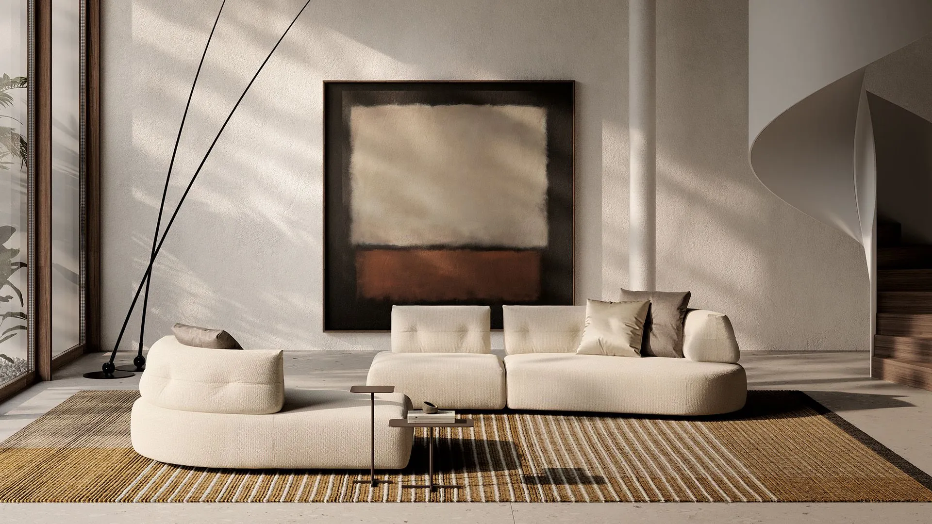 And continuous lines draw a sculptural yet welcoming sofa, where the generosity of the seats meets a rigorously controlled design.