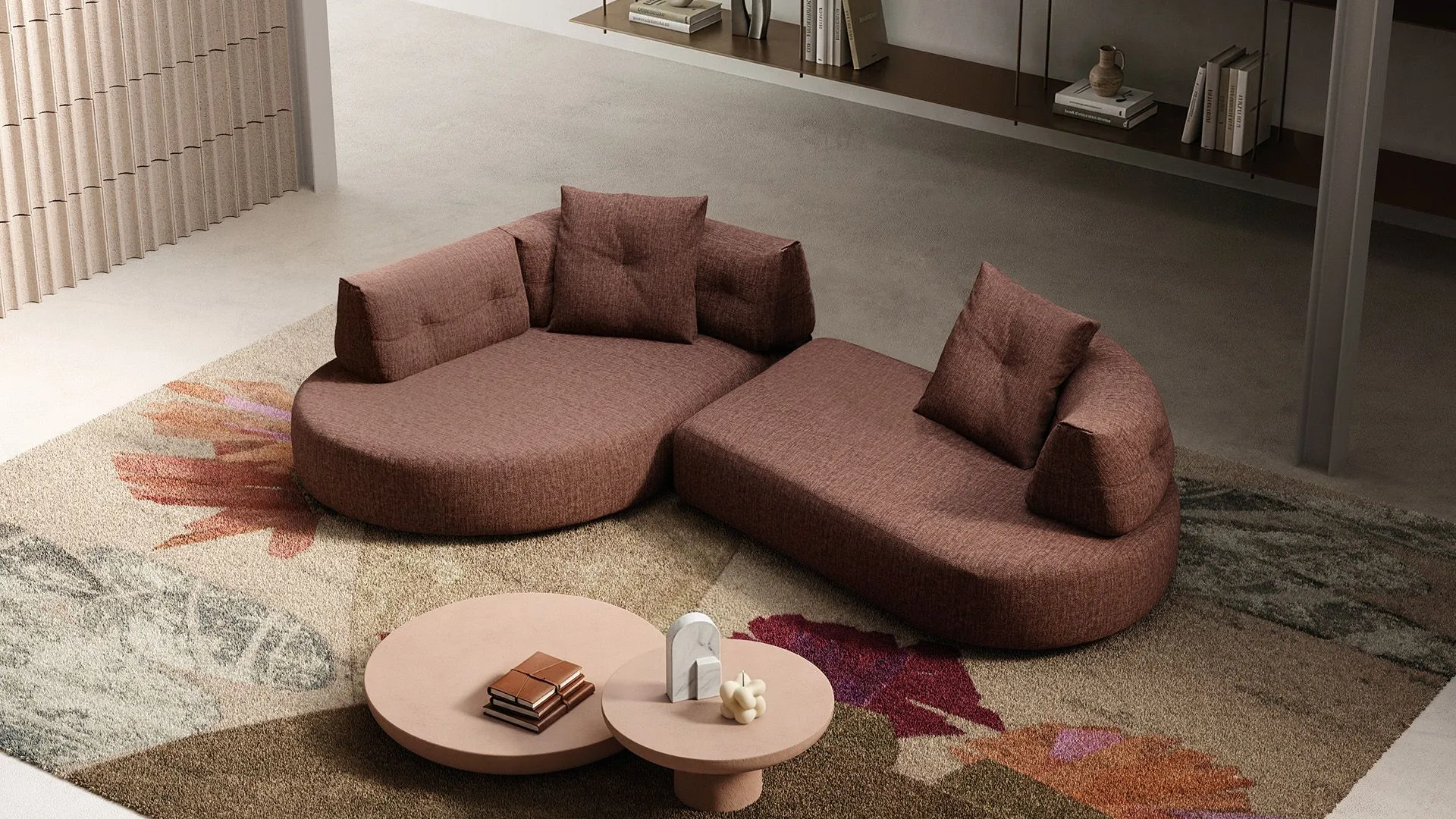 With Lotus, the transformation is immediate: just move the removable backrests and reposition the elements, all completely upholstered, to obtain new compositions or independent seating. Each module is finished on all sides, so it can be freely rearranged in the space while always maintaining order and harmony.